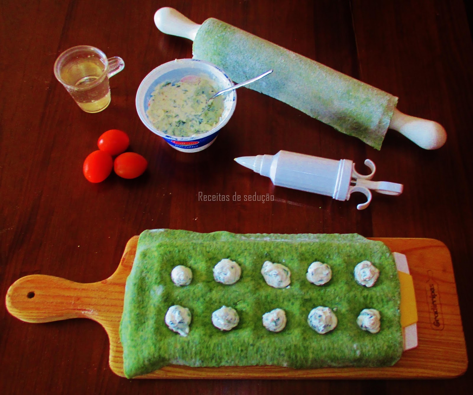 Junte os espinafres à ricotta depois de frios e adicione as ervas lavadas e picadas.