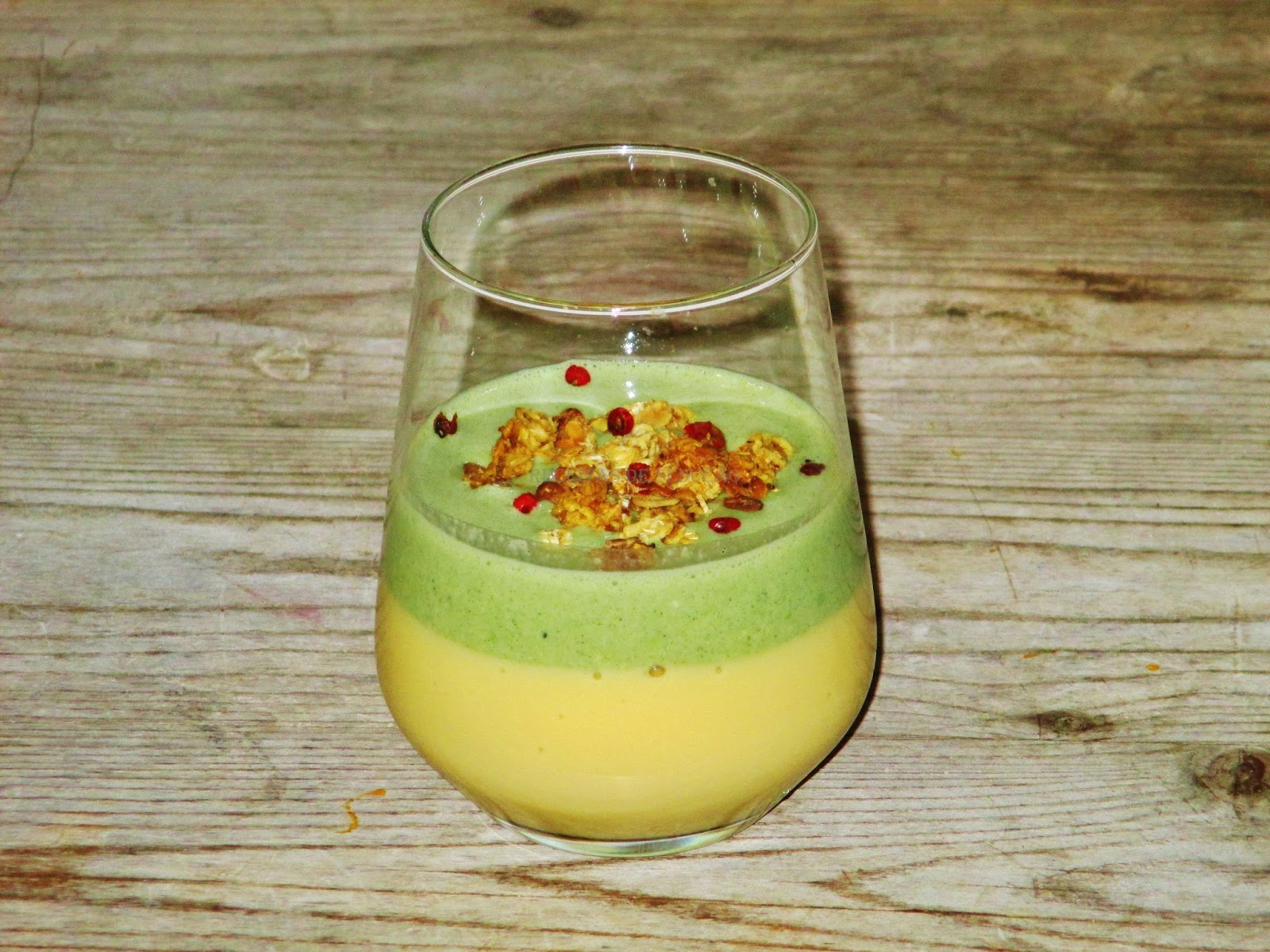 Creme de Soja e Papas de Aveia e Matcha com Granola Caseira